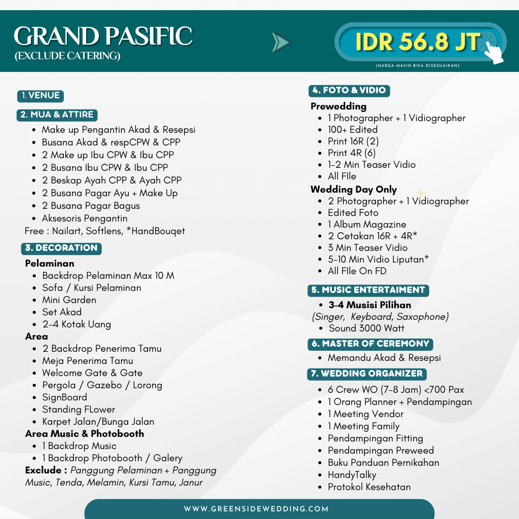 - Pendampingan Sampai Hari H (Fitting, Prewedd, TestFood, Showing Decor)